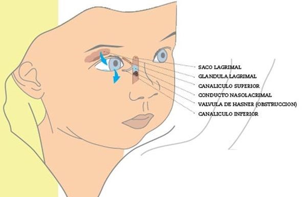 Constantemente se están produciendo lágrimas para ayudar a proteger la superficie del ojo, éstas drenan hacia una pequeña abertura en la esquina del ojo cercana a la nariz que hemos denominado antes como punto lacrimal; dicha abertura es la entrada al canal nasolagrimal. Si esta abertura se bloquea las lágrimas se acumulan y se derraman por las mejillas aunque el bebe no esté llorando. Esto puede suceder porque no esté desarrollado al nacer o se encuentre cubierto por una película delgada que causa un bloqueo parcial.